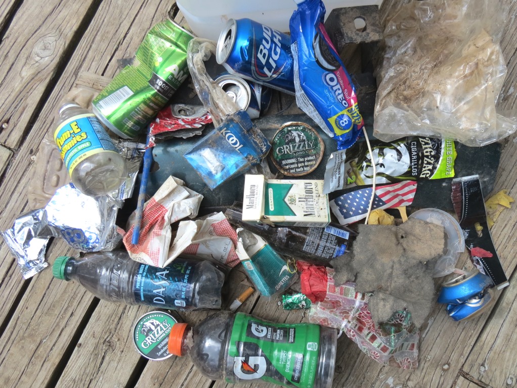 April 26th: #grizzly tins, #zigzag wrappers, #oreo wrapper, #AMP can, #dasani water bottle, #gatorade bottles, #newport, #Kool, #Marlboro boxes, #coke can, #budlite can and bottle, #poptart wrapper, #beef ground wrapper, xmas ornament, #tumEyummies bottle, plastic car parts, #spartan water jug, straws, lids, cig butts, wire, sheet plastic, etc..etc…