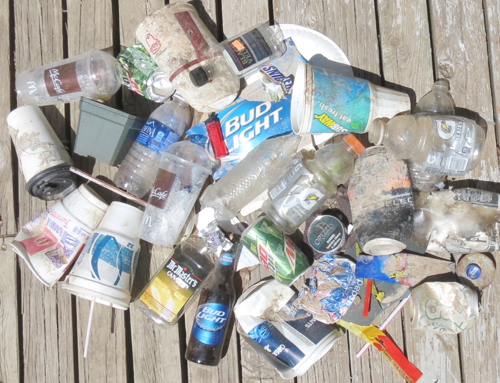 May 1 2015 #budlite box, paper plates, #subway cup, #gatorade bottles, #budweiserselect can, #AandW bottle, #grizzly tins, caps, cig butts, #planters peanut wrapper, #pepsi can, plastic car parts, a glove, #tacobell cup, #mtndew cans, #budlite bottle, #mcmasters bottle, #snickers wrappers, styro cups, #mcdonalds cups, #mccafe cups, straws, #aqufina water bottle, lighter, #arbys cup, nursery pots, water bottles, #blackvelvet bottle, etc…