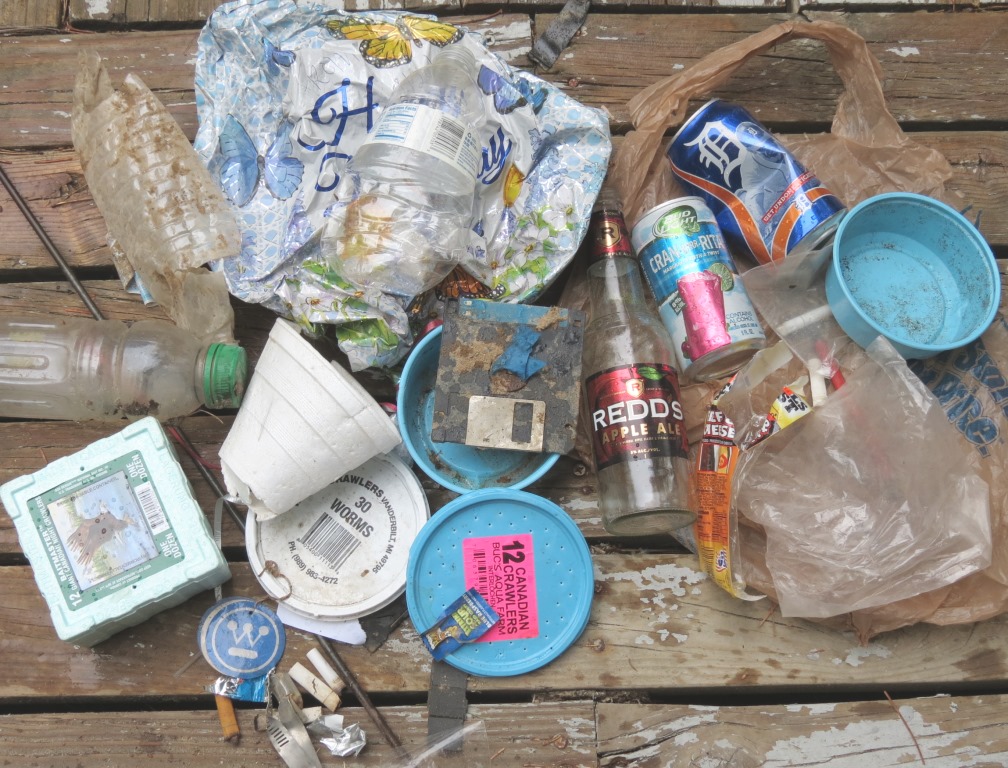 May 25, 2015May 25, 2015 May 24 2015 weekend walk – Mylar balloon, bud lite CranRita can, Redd’s Apple Ale, 2 worm tubs, styro cup, 2 water bottles, cig butts, labatt blue can, pen, floppy disk, plastic bits, metal bits, candy wrapper, gum wrappers, baitmaster worms… Share this: Click to share on X (Opens in new window) X Click to share on Facebook (Opens in new window) Facebook Like Loading... Related